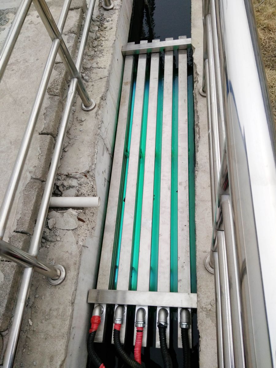 五、應(yīng)用行業(yè)及所用配件材質(zhì)結(jié)構(gòu) 1、本產(chǎn)品適合于工業(yè)廢水排放、生活污水排放中末端水的消毒處理。適用對象為污水處理廠、工廠和醫(yī)院等的污水處理站。 2、本產(chǎn)品用于渠道式排水的消毒處理。 3、本產(chǎn)品可用于替代常規(guī)的加氯消毒工藝設(shè)備。紫外線消毒模塊:放置于水渠內(nèi),將燈管全部沒于水下作業(yè)。 4、紫 外 模 塊 采 用 雙 排 燈 并 列 排 布 ,防 水 設(shè) 計,模 塊 上 端 鎮(zhèn) 流 器 盒 防 護(hù) 等 級 達(dá) 到 1P54 ,模塊結(jié)構(gòu)緊湊、安裝方便,在水流動過程中可實現(xiàn) 單獨 維護(hù)、模 塊 所有與 污 水 接 觸 的 金 屬 元 件 均 為 3 0 4 不 銹 鋼 ; 所 有 連 接 線 纜 均 不 暴 露 在 污 水 和 紫 外 光 中。 6、燈管處密封采用雙重保護(hù)設(shè)計。 7、設(shè)備采用低壓高強(qiáng)度紫外燈,高強(qiáng)度UV-C輸出,壽命長,有效工作壽命大于12000小時;燈管為單端出線式,便于安裝與維護(hù)。 8、設(shè)備采用的 鎮(zhèn) 流 器 是 專為本產(chǎn)品所使用的紫外燈配套設(shè)計,匹 配 性好,具有多種異常狀態(tài)的保護(hù)功能,可靠性高,壽命長。 9、石 英 套 管 采 用 進(jìn) 口 原 材 料 石 英 , 紫 外 光 透 過 率 大 于 9 3 ** ; 與 紫 外 燈 相 配 , 結(jié) 構(gòu) 亦 為 單 端 開口式,安裝方便,減少漏水點。 10、**大工作水壓: 0.3MPa。 11、適 應(yīng) 水 溫: ≤50-60℃。 12、模塊輸入電源:220V/50HZ 六、系統(tǒng)整體性能標(biāo)準(zhǔn)